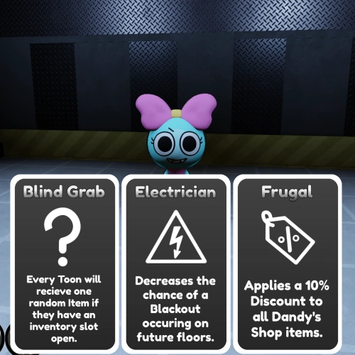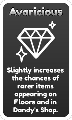 Slightly increases the chances of rarer items appearing on Floors and in Dandy's Shop. | |