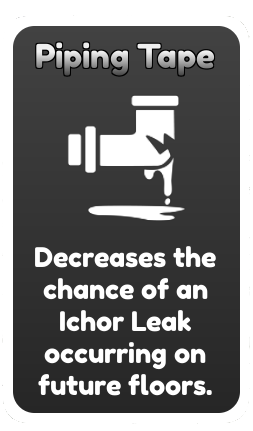 Decreases the chance of an Ichor Leak occurring on future floors. (30% --> 25% max Ichor Leak chance, +2% --> +1.5% per floor) | |