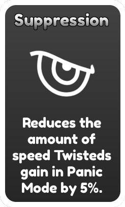 Reduces the amount of speed Twisteds gain in Panic Mode by 5%. | |